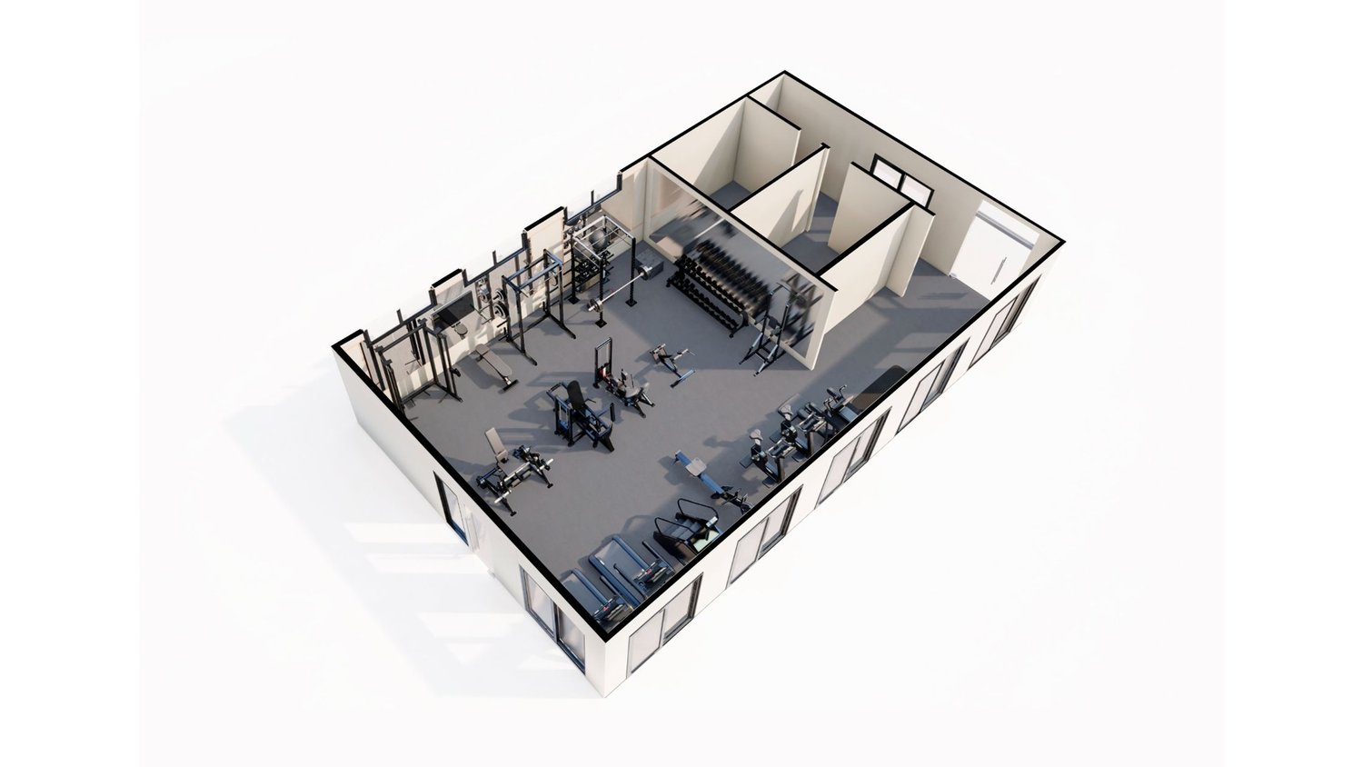gym design 3D floor plan by biofit for a multi-family residential development USA