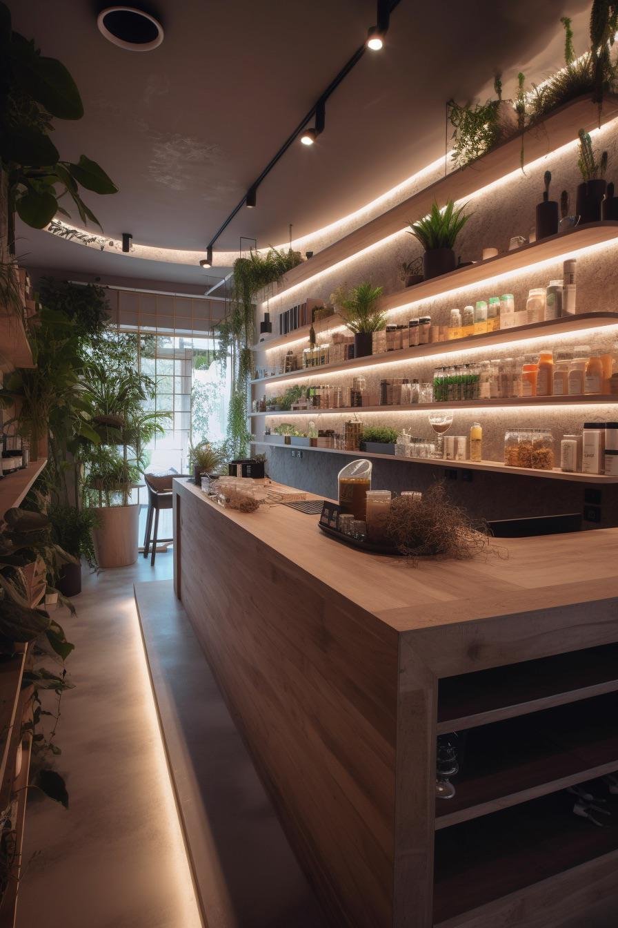 By integrating biophilic design elements into their establishments, health bars can create a more inviting and relaxing space where customers and employees can recharge and connect with nature while enjoying their health-promoting products and services.