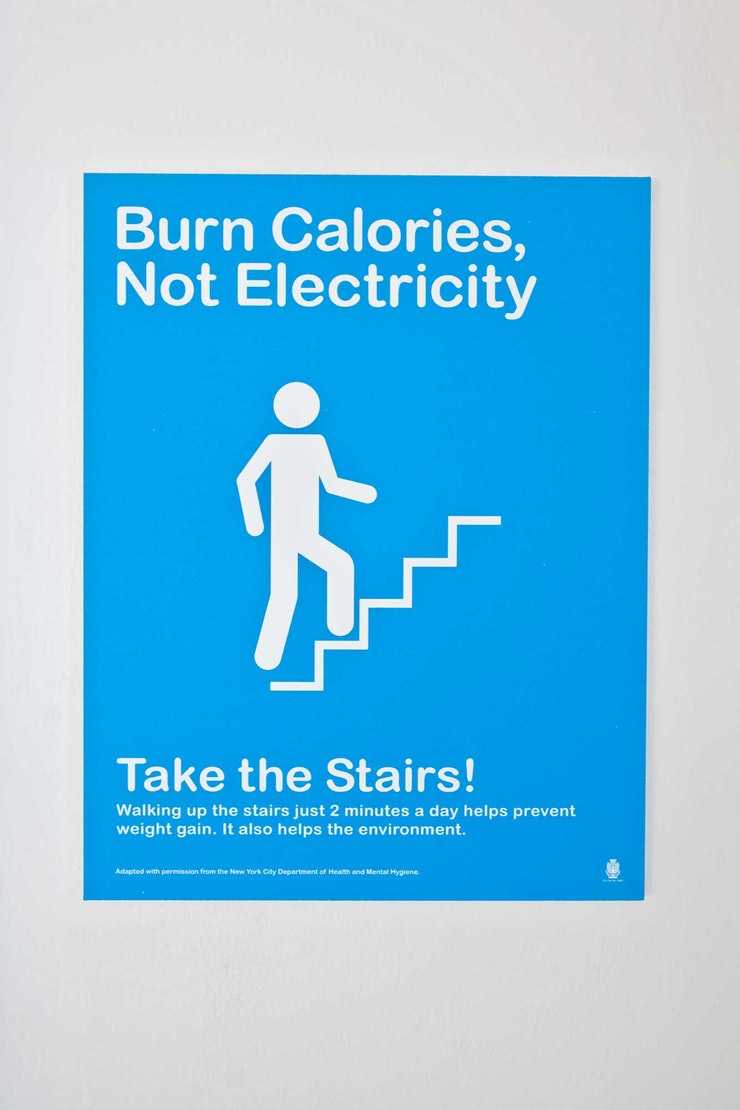 Simple signage prompts are a seemingly obvious yet remarkably effective way of encouraging office workers to stay active, use the stairs and say no to the elevator, assuming a reasonable number of floors are required..!